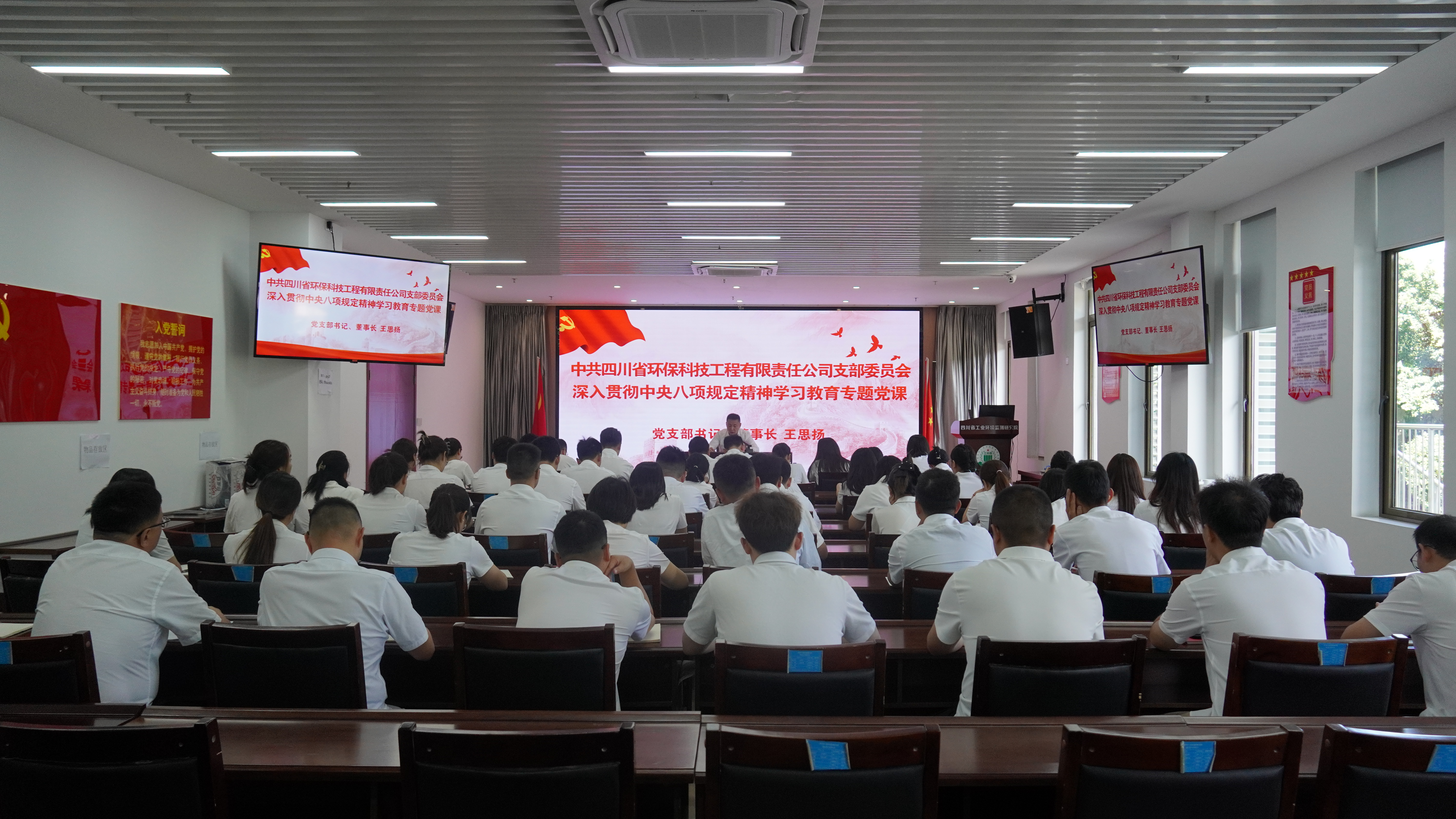6月30日,公司黨支部書記、董事長(zhǎng)王思揚(yáng)以“學(xué)深悟透勇于擔(dān)當(dāng),風(fēng)華正茂不負(fù)欣賞”為題,為環(huán)科工程、環(huán)科咨詢公司領(lǐng)導(dǎo)班子成員、全體黨員干部職工講授深入貫徹中央八項(xiàng)規(guī)定精神學(xué)習(xí)教育專題黨課。